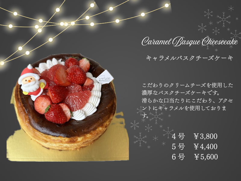⼝どけのいい、なめらかで濃厚なバスクチーズケーキです。 ⽢すぎず、最後まで美味しく召し上がっていただけるようお つくりしております。 チーズ好きの⽅はぜひ、ご賞味ください。