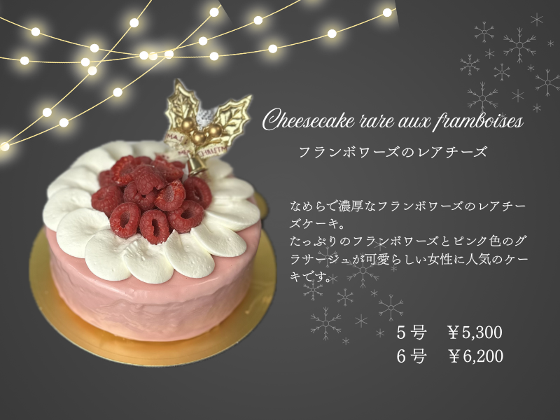 フランボワーズのピューレ入りのレアチーズ生地に、フランボワーズとホワイトチョコのグラサージュで仕上げた甘酸っぱいレアチーズケーキです🧀